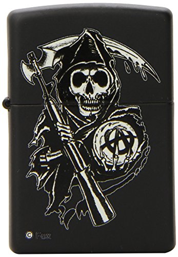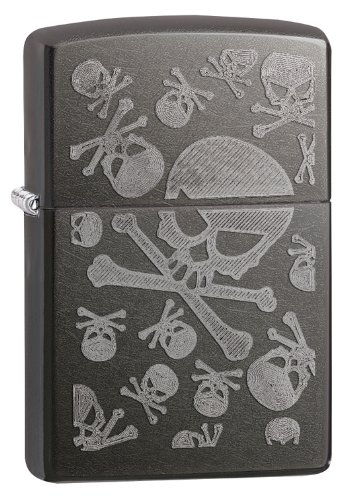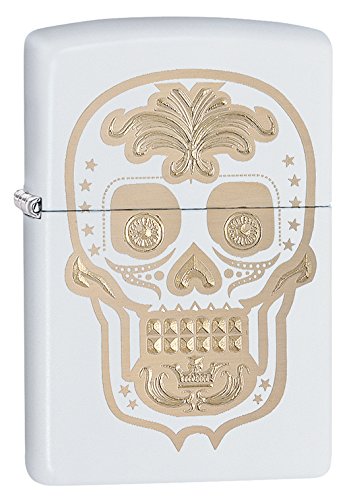 Genuine Zippo windproof lighter flashes a colorful splatter-painted skull on reserved black matte finish. Refill with Zippo premium lighter fluid for dependable, long-lasting service. Distinctive lasered hinge and bottom stamp authenticate this lighter as a genuine Zippo matte lighter.Feature