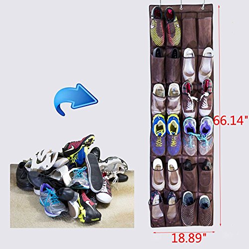 -. Feature : 1. This robust organizer has 24 breathable pockets that can hold men's shoes; Hanging on standard door, easy to assemble and saving floor space. / 2. Mildew proof breathable practical, protect shoes from dust and damage, space-saving storage, a good helper for storaging shoes. / 3. Use to store toys, iPhone, make-up, belts, scarves, knitting yarn, cleaning products, craft items, etc. / 4. A perfect hanging storage for the room where space is limited; Shoe rack is neatly hung behind door for the ultimate shoe storage solution, saving floor space. / 5. Materials: Oxford cloth; SIZE: 168cm * 48cm, 66.14" x 18.89"( L* W).