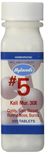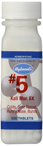 Hyland's Cell Salts #5 Kali Muriaticum 6X Tablets, Natural Relief of Colds, Sore Throat, Runny Nose, and Burns, 500 Count Colds, Sore Throat, Runny Nose