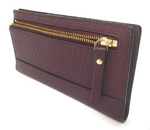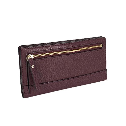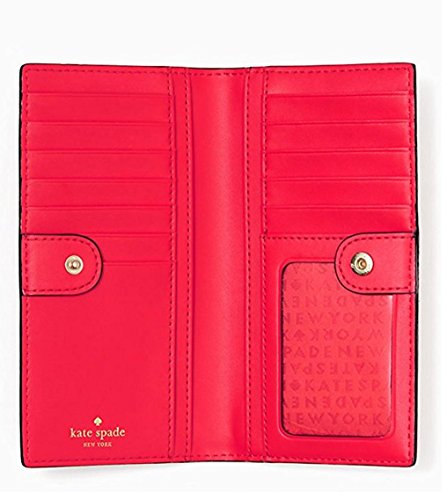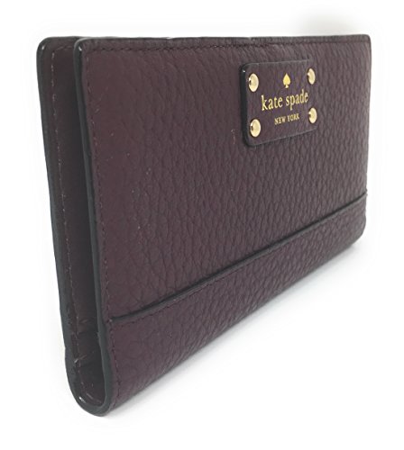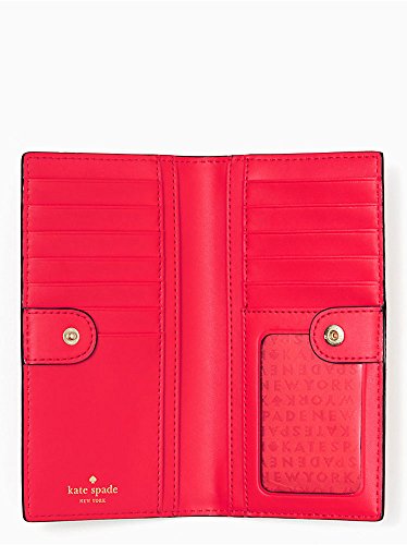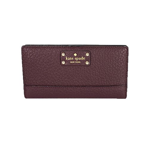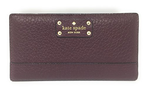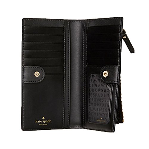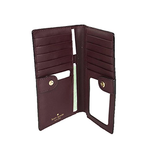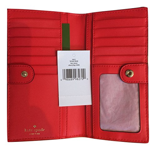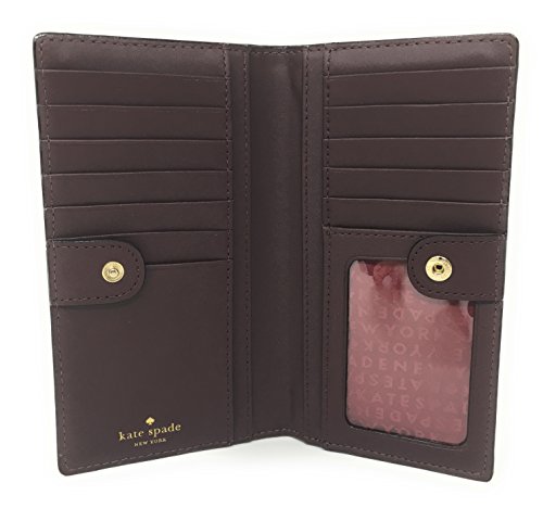 Binding : Apparel Product Description This compact Kate Spade New York Stacy Bay Street Stacy wallet is wrapped in pebbled leather with 14-karat light gold plated hardware. This billfold has a snap closure, and Kate Spade's logo and heart stud license plate logo accents the front. The back features an exterior zippered accordion pocket. The inside offers 13 credit card slots, a clear ID slot and billfold compartments. This gem is slightly smaller than many at 6.75 inches (L) x 3.75 inches (H) x 1 inch (W). 0