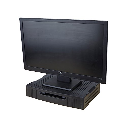 -. Title : Mind Reader 'Harmonize ' Adjustable Plastic Monitor Stand with Drawer, Black