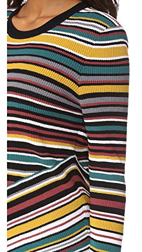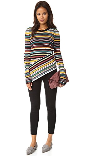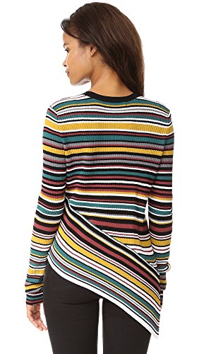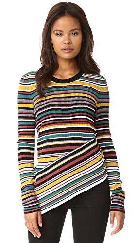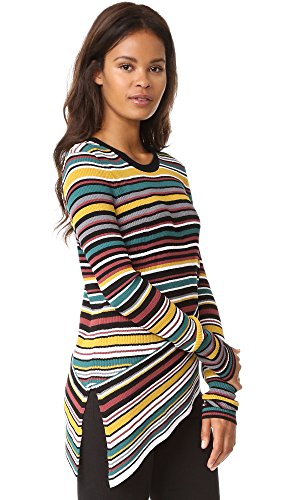 Bright stripes add a playful touch to this fitted Milly sweater. Angular, asymmetrical hem. Long sleeves.