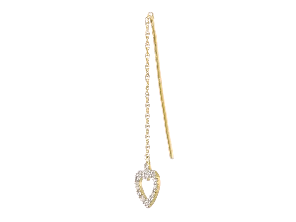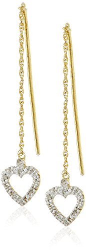 Sterling Silver with Yellow Gold Plating Diamond Heart Dangle Earrings