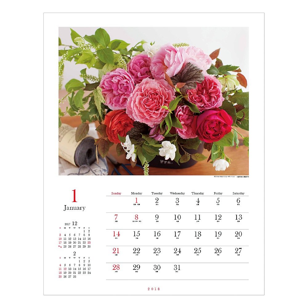 It is a calendar where you can enjoy "scent of roses" together with an elegant arrangement of beautiful roses.