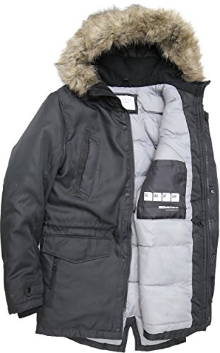JACK & JONES Herren Parka jcoLAND Parka Jacket Wintermantel Winterjacke Kapuze Kunstfell viele Taschen (L, Schwarz (Black Detail:GREY))