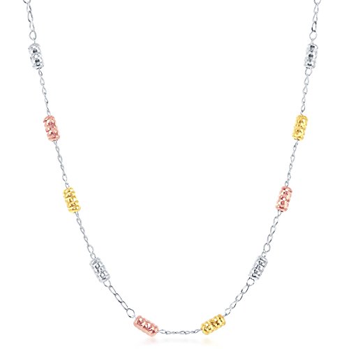 Embrace this beautiful sterling silver Italian or Italian Tri-Color linked striped rod neckalce! It is meticulously designed to add a pop of shine to your everyday outfit or for an important event. The necklaces contains twenty-two 6mm striped rods that are linked together with an approximate 10mm cable chain between the rds to give it an edgy look!
