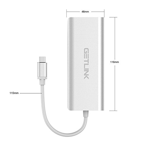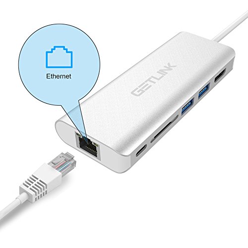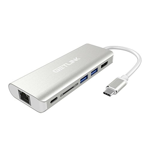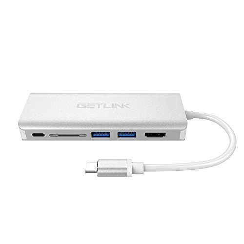 USB C Hub,Getlink USB-C Multi-port to HDMI 4K, 2-Port USB3.0, Card Reader, USB C Power Delivery and Gigabit Ethernet Adapter(Silver)