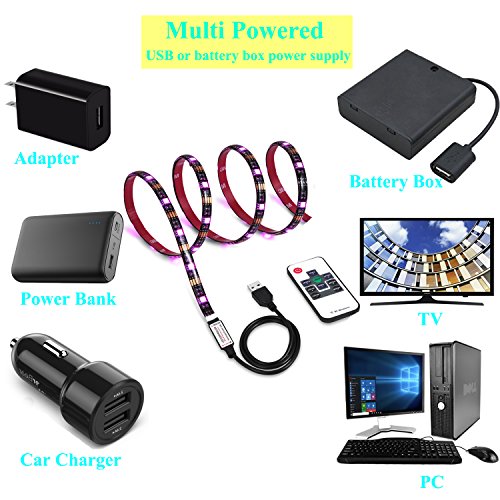 - USB & BATTERY-POWERED OPTION: Our usb led lighting strip can be lighted on not only via USB port but also via 4*AA Battery box (batteries not included). Make it a portable decoration light strip wherever you go. No additional AC or DC power supply.