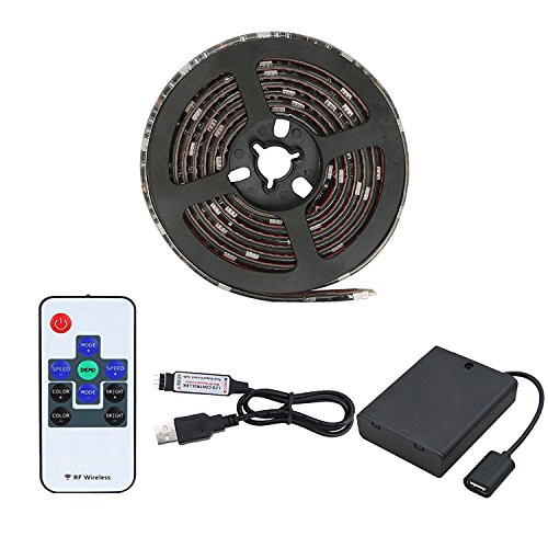 USB Battery Powered LED Strip Lights with RF Wireless Remote, Waterproof Flexible 60 RGB Leds Light Strip, SMD 5050 Multi Color Changing Ribbon Backlight Bias Lighting LED Rope Lights (6.56ft/2m)