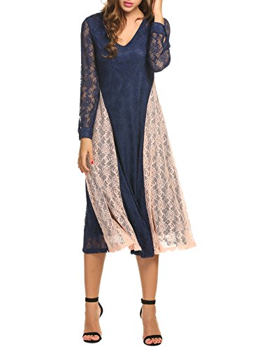 Title : ACEVOG Women's Floral Lace Sleeveless Long Bridesmaid Maxi Dress (Navy Blue XL)