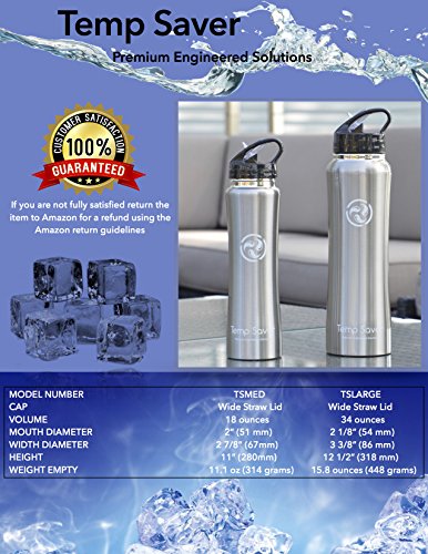 -. Title : TEMP SAVER Best Stainless Steel Vacuum Insulated Water Bottle, NEW larger 34 Oz Capacity, Wide Mouth, Double Wall Design, with Straw Cap Included! The most user friendly bottle on the market!!