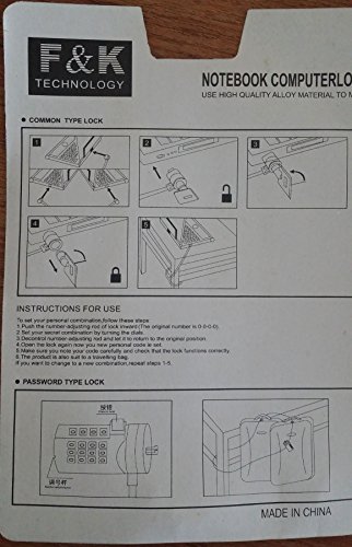 The rotatable sturdy locking mechanism (made from steel with an aluminium casing) fits into a 'Kensington port' and is looped around a secure/immovable object (i.e. table leg) to keep your Laptop safe. The mechanism features a 4 digit combination lock, giving you a high level of keyless security. Attached to the lock is a steel-stranded cable, providing extra resistance to cutting from objects such as bolt cutters. The cable has a simple loop in the end which the lock is passed through to complete the 'lock' once attached to a secure/immovable object.