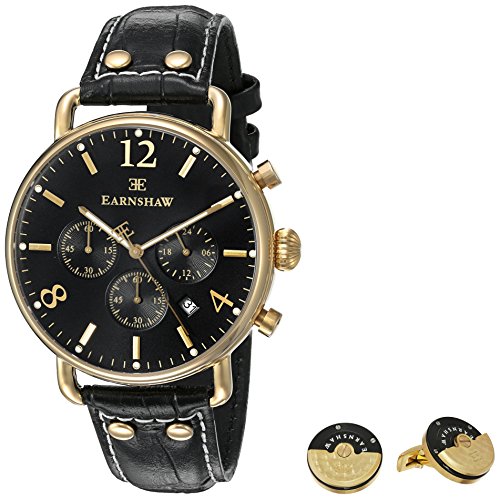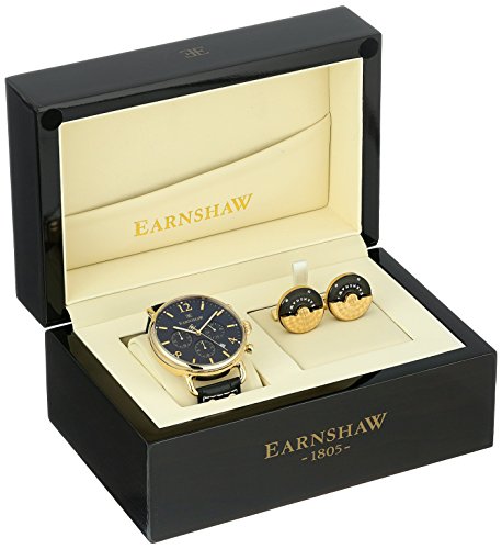 -. Binding : Watch -. Brand : Thomas Earnshaw -. Color : Black -. Department : mens -. EAN : 0814097024814 -. Feature : Watch Set that includes a set of cufflinks and an Investigator Japanese Quartz watch / Japan Chronograph Movement with Date and gold ion-plated case / Japanese-quartz Movement / Case Diameter: 43mm / Water Resistant To 30m (100ft): In General, Withstands Splashes or Brief Immersion In Water, but not Suitable for Swimming or Bathing / Cufflinks: 21.5Hx21.5W -. Label : DTP Vendor A2OER3THKIFMHA -. Manufacturer : DTP Vendor A2OER3THKIFMHA -. Model : ES-8001-SETA-01 -. MPN : ES-8001-SETA-01 -. PartNumber : ES-8001-SETA-01 -. ProductGroup : Watch -. ProductTypeName : WATCH -. Publisher : DTP Vendor A2OER3THKIFMHA -. Studio : DTP Vendor A2OER3THKIFMHA -. Title : Thomas Earnshaw Men's 'Investigator' Quartz Stainless Steel and Leather Dress Watch, Color:Black (Model: ES-8001-SETA-01) -. UPC : 814097024814
