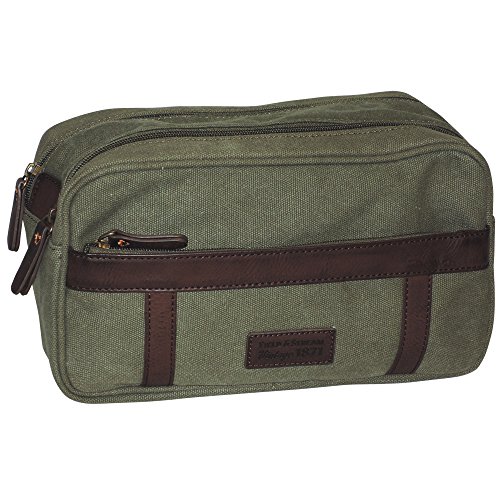 -. Brand : Field & Stream -. Department : mens -. Feature : 16 oz. Washed Canvas, Faux Leather Trim and Accents, Field & Stream Logo Patch or Embossing / Exterior Front Zip Pocket / Separate Double Zip Top Opening / Two Interior Slip Pockets / One Interior Zip Pocket -. Model : FS02716 -. PackageQuantity : 1 -. ProductGroup : Apparel -. ProductTypeName : LAGE -. Title : Field & Stream Vintage Gear Double Zip Travel Kit