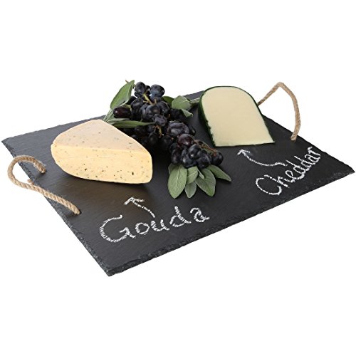 From Cheddar To Munster, Display And Serve Your Favorites. Wine and cheese parties just aren't the same without this beautiful slate cheese-serving tray. The hardy slate stands up to cutting as you slice your cheeses into bite-sized samples. Rustic, unfettered design handsomely serves fine cheese, with a generous surface of 16 by 12 inches, with plenty of room for crackers, fruit and other morsels.