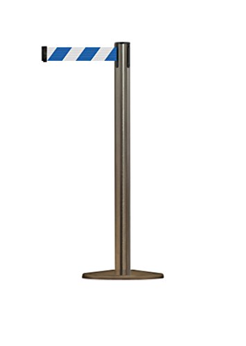 Tensabarrier 889U-3S-3S-MAX-NO-D1X-C - Satin Stainless Post, 2" Wide, 13' Length Chevron Blue & White Belt , 38" Height, 2.5" Wide, 156" Length