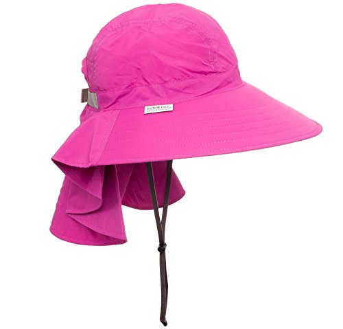 -. Feature : 4 1/2" wide brim with floatable foam core and poly brim wire for full-face coverage / 7 1/2" pleated waterfall veil protects neck and upper back / UPF 50+ certified sun rating / Water repellent / stain resistant / Ponytail friendly opening at back of crown / 4 1/2" wide brim with floatable foam core and poly brim wire for full-face coverage.7 1/2" pleated waterfall veil protects neck and upper back. UPF 50+ certified sun rating,Water repellent / stain resistant / Ponytail friendly opening at back of crown.Interior wicking sweatband.Packs for travel / Chinstrap with cord lock.External sizing band for custom fit.Lightweight: 3 ounces / Size: Women's M - One size fits most (see hat sizing chart) / Patent #D594,185. Designed in USA