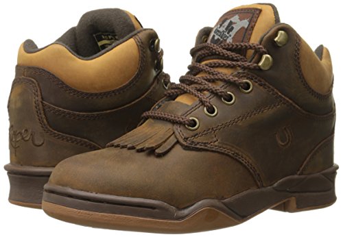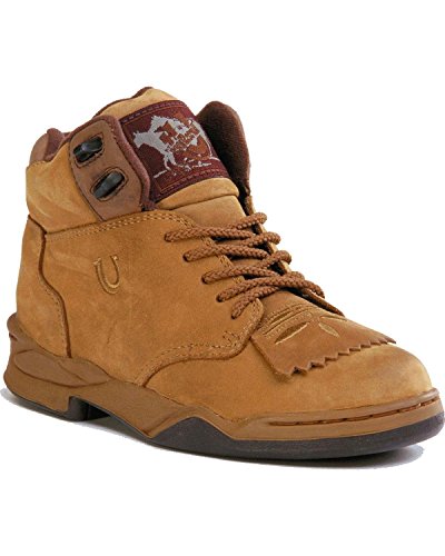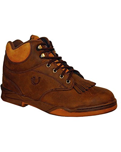 Studio : Roper Publisher : Roper Binding : Apparel Product Description Roper(R) Ladies Horseshoe Kiltie Boot For on the go with two legs or four! This 3/4 ankle height Kiltie Boot pairs a soft support inner sole and double stitch seams with a 9/16" riding heel and forged steel shank for support and stability. Features: Forged steel shank 9/16" heel for riding Soft Nylex lining Soft support inner sole Non-marking rubber outsole Laces for fully adjustable comfort Laced eyelets at top Item Specifications: Material: Oiled Leather 0