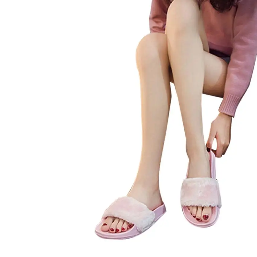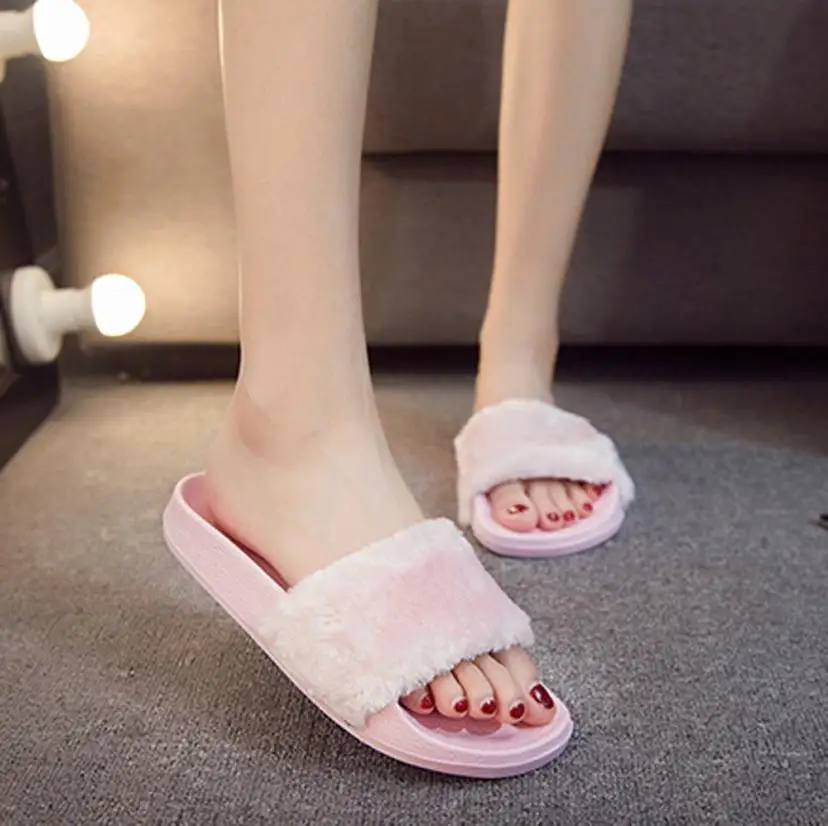 Model Number:Womens Ladies Slip On Sliders Fluffy Faux Fur Flat Slipper Flip Flop S