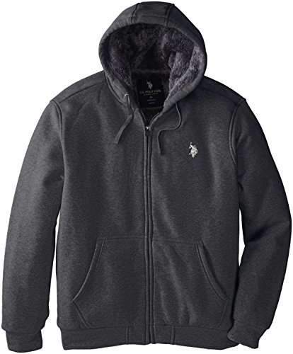 U.S. Polo Assn. Men's Big-Tall Sherpa Lined Full Zip Fleece Hoodie, Heather Dark Gray, 2X