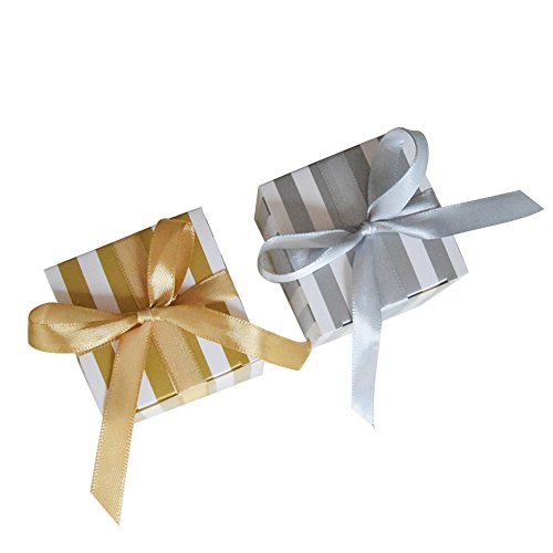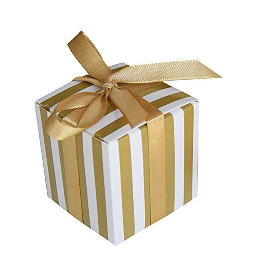 AmaJOY 50PCS Stripes Design Favor Box,Wedding Candy Box,Baby Shower Box,Baby Design Chocolate Box,Birthday Party Supplies (Gold)