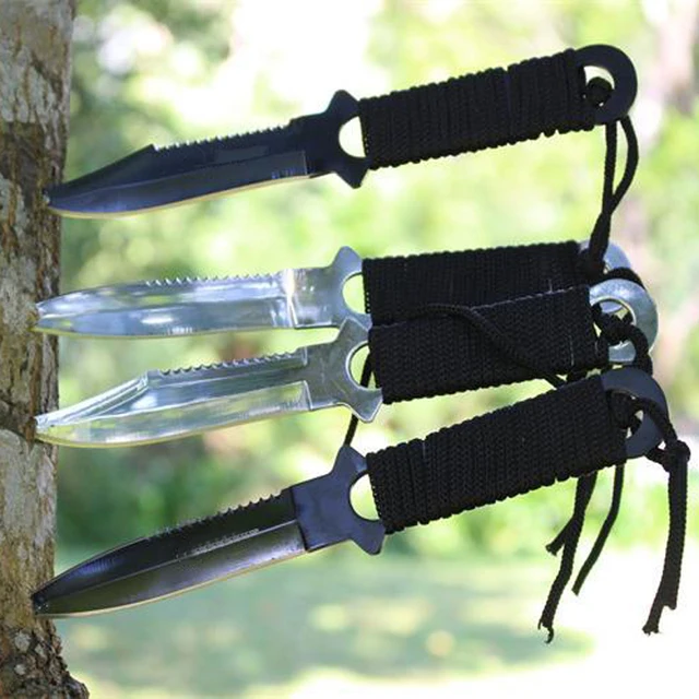 | [해외] 4 pcs/많은 스테인레스 스틸 고정 블레이드 전술 나이프 야외 다이빙 사냥 칼 생존 캠핑 나이프 navajas coltelli |