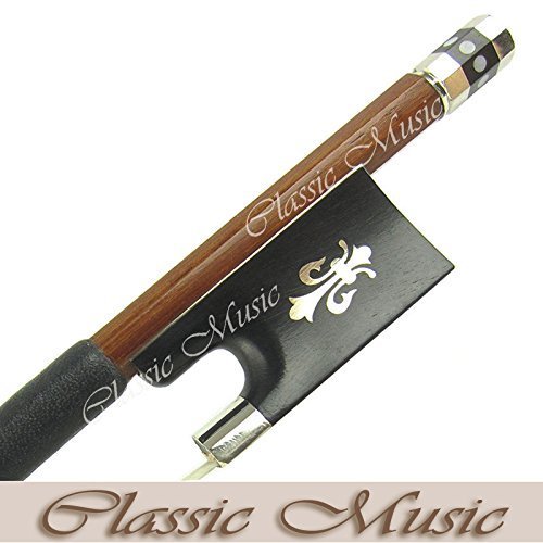 -. Title : Classic Music Silver Pernambuco Violin Bow with Fleur-de-Lys Inlaid Ebony Frog (4/4), Mongolian Horse Hair