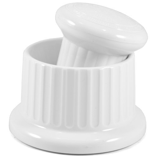 -. Feature : White, sturdy polycarbonate / No pounding, less noise, less effort and better results / Modernized design / A couple sample recipes are included with instructions / Dishwasher safe