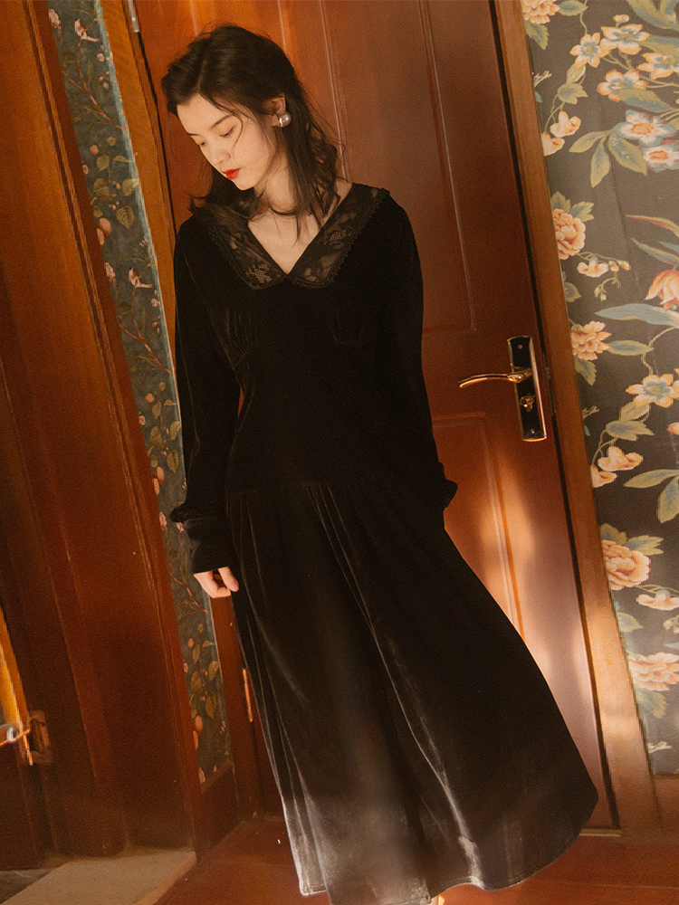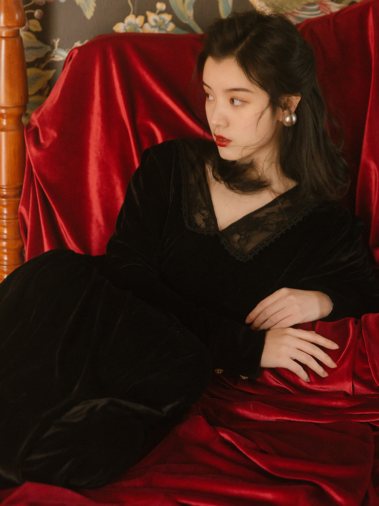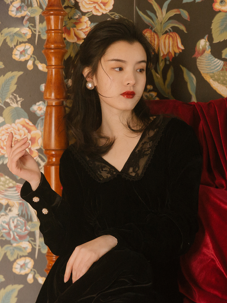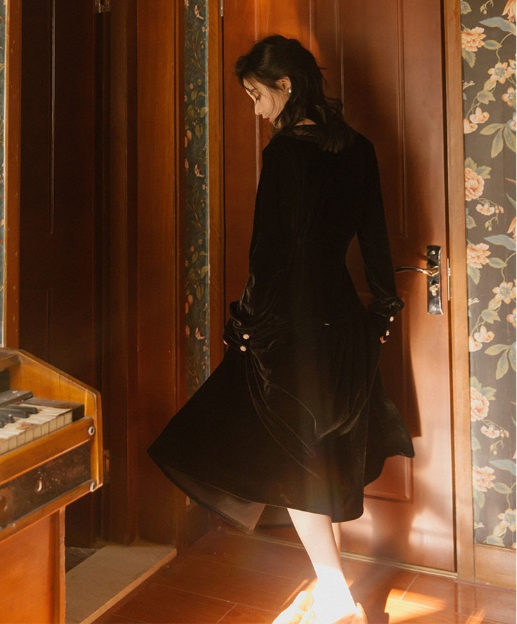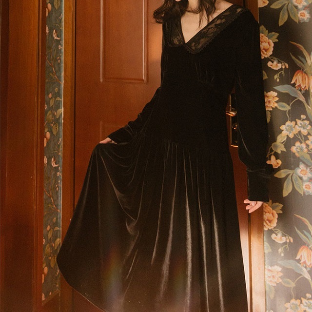 女性らしい気品溢れる着こなしが叶う、ベルベット素材のワンピースです♪