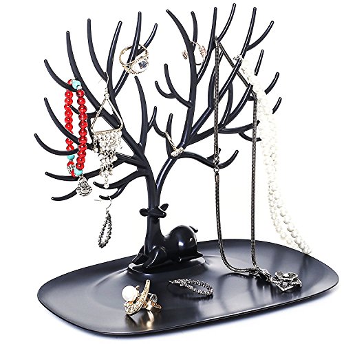 Wuligirl Tree Jewelry Display Necklace Earring Stands Ring Bracelet Jewelry Holder Organizer Rack Tower (Black Deer Jewelry Stand)