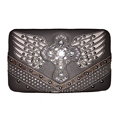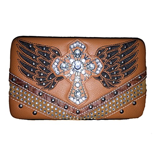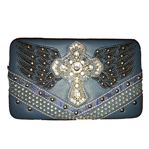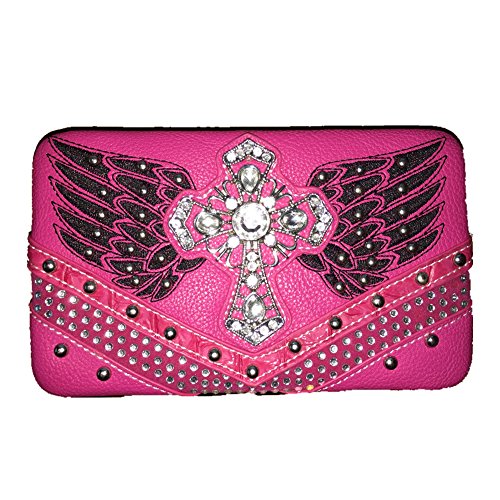 Binding : Apparel Product Description Premium Rhinestone Angle Wings Cross Stlyle Wallet in 7 Colors. Size:7" x 4" x 1". 10 credit card slots, 2 I.D slots. Pocket with zipper, 3 cash check pockets. Premium rhinestone, Angle wings stlyle design. Fast handling and shipping in same business day. 0
