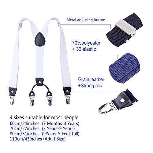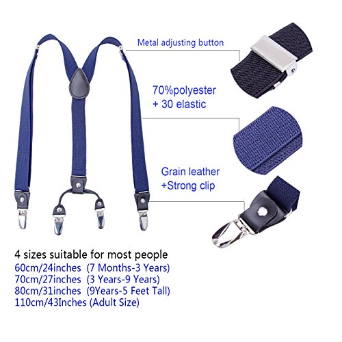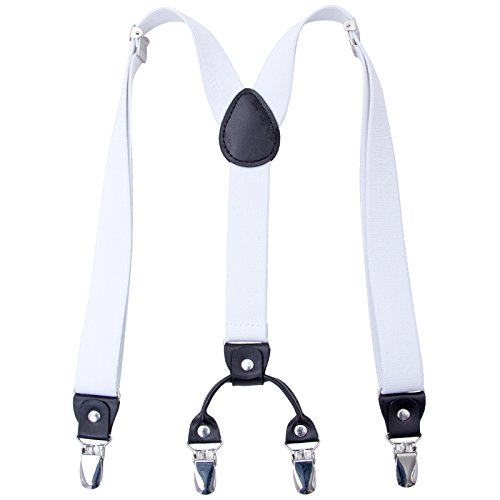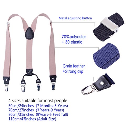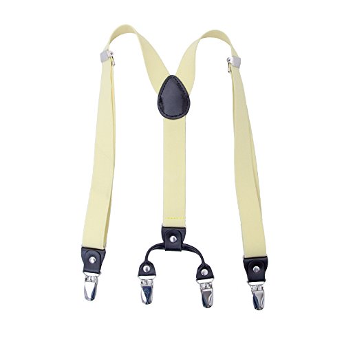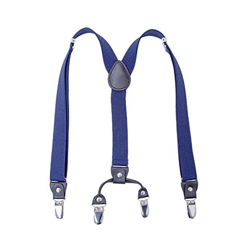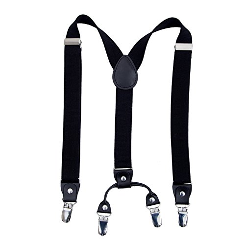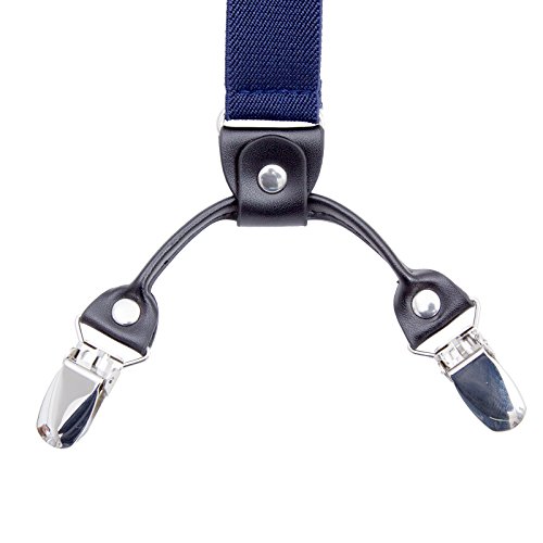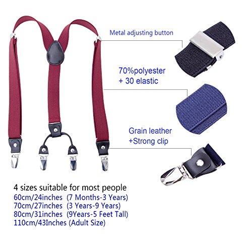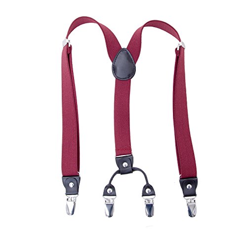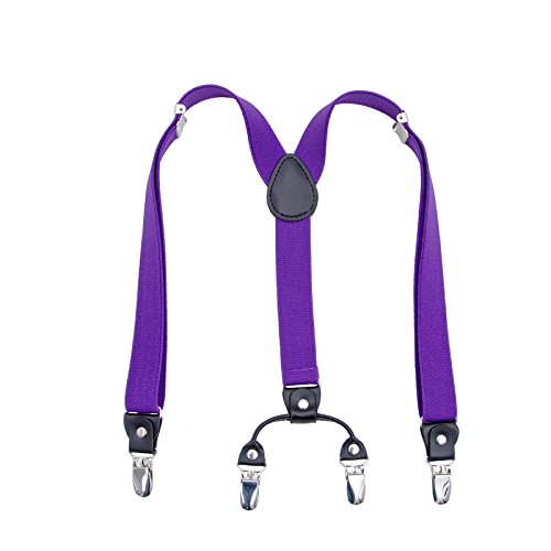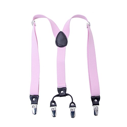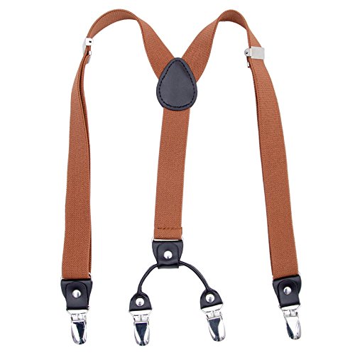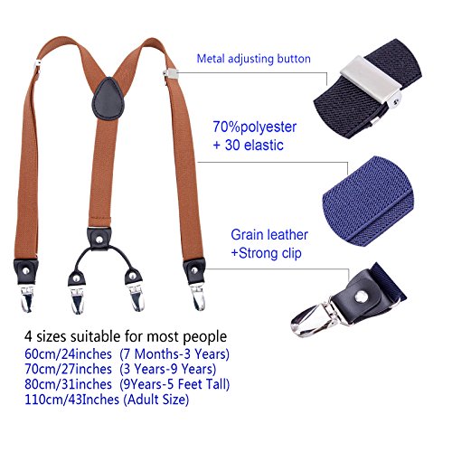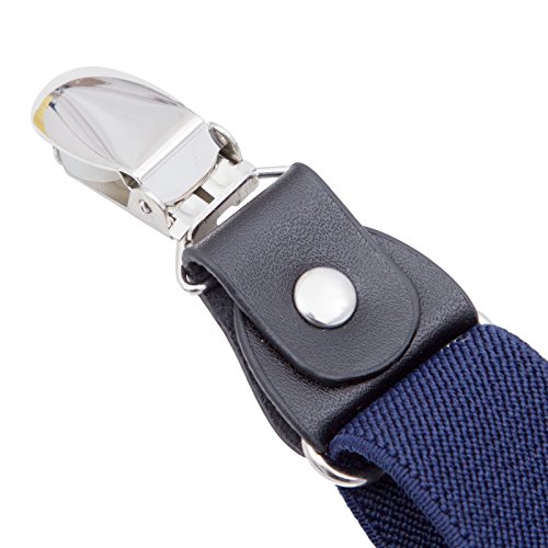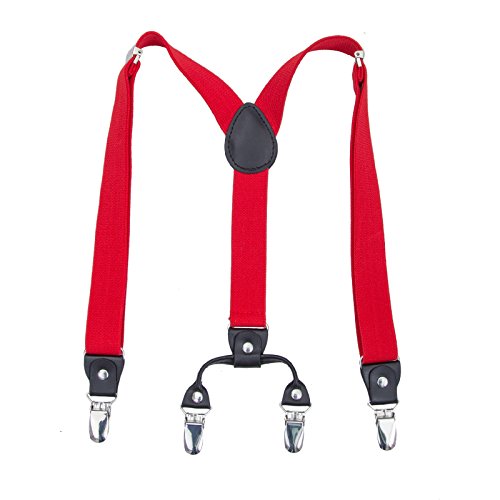 | Boys Men Adjustable Elastic Suspenders - Solid Color Genuine Leather 1 Inch Wide Braces |