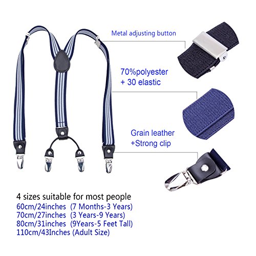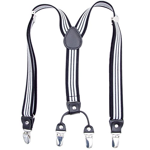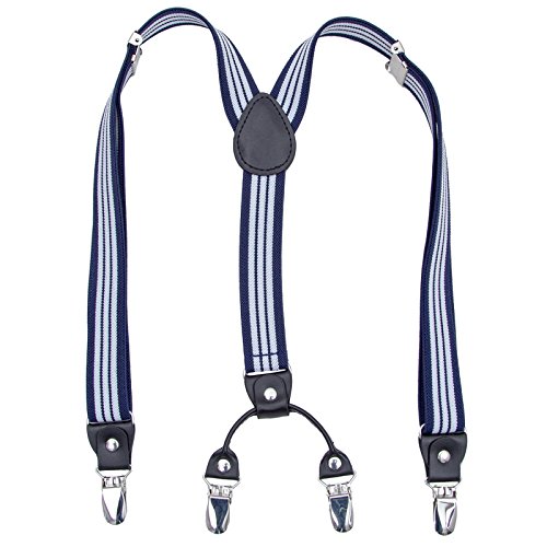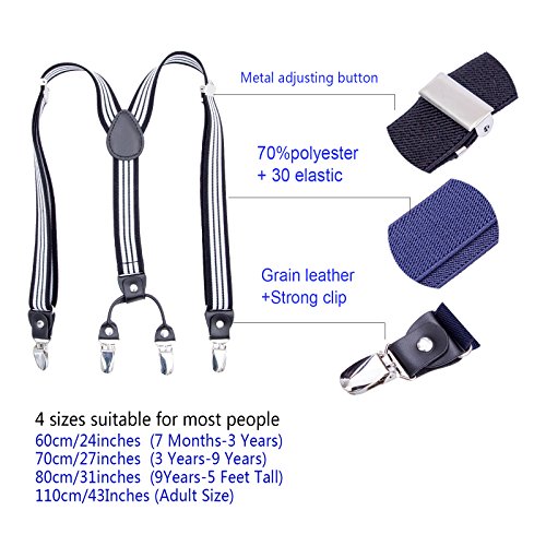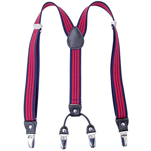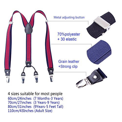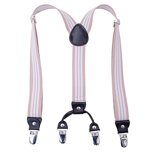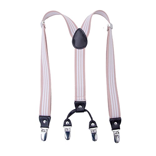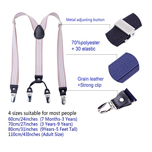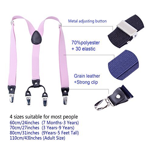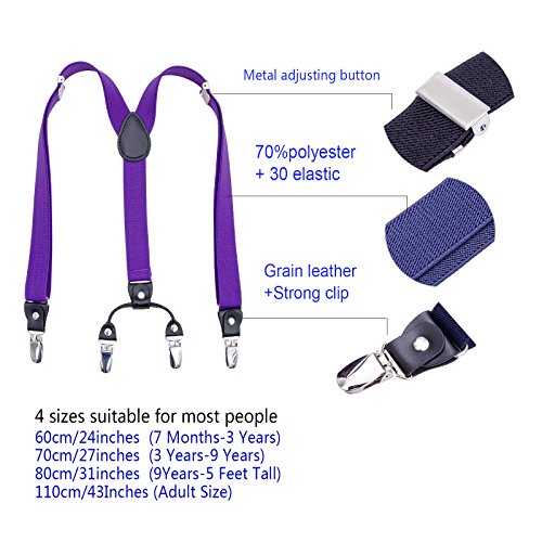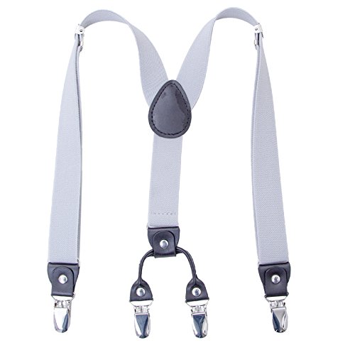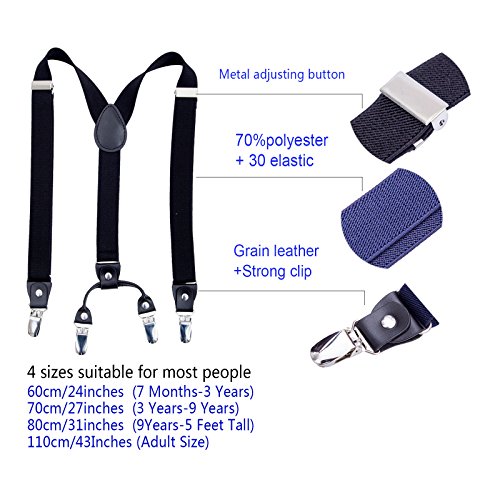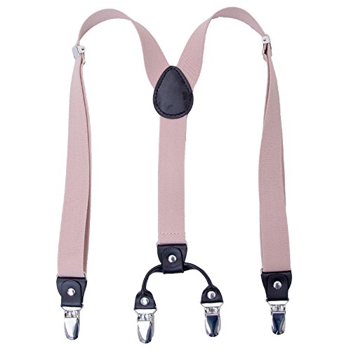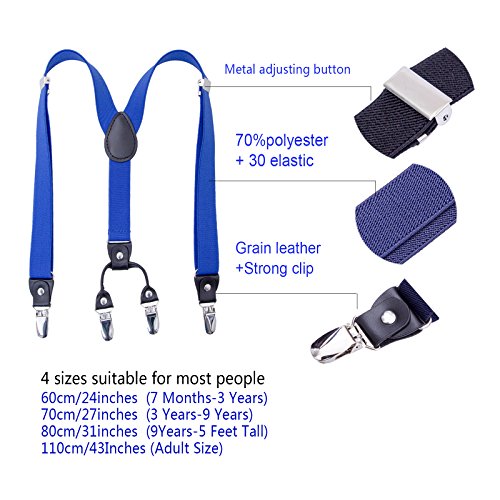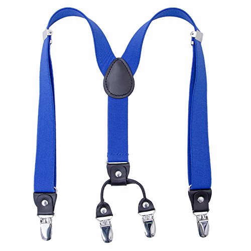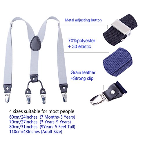 | Boys Men Adjustable Elastic Suspenders - Solid Color Genuine Leather 1 Inch Wide Braces |