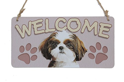 Dog Plaque Sign SHIH TZU Welcome Sign With Dog Footprints Sign Plaque (5" x 10")