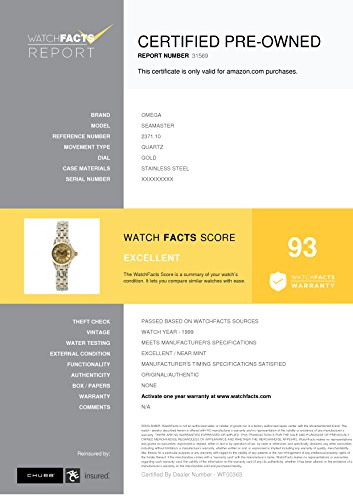 -. Feature : Omega Seamaster 2371.10 with 6 millimeters band, yellow-gold bezel and gold dial / Authenticated by WatchFacts. Grade Rating: 93 / Condition: Excellent / No papers offered with this watch / Quartz movement / Watch year: 1999