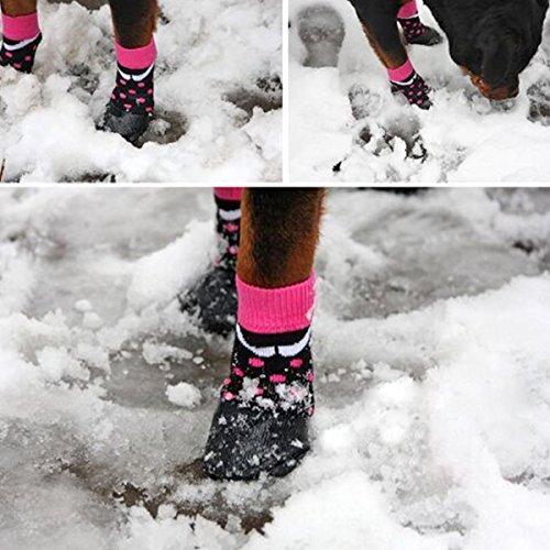-. Feature : Special design for the pet dogs outside running, walking. Made of Nonslip waterproof rubber sole, suitable for any environment like wet, slippery, rainy etc. / Easy to wear and clean. Give your pet dog a special caring and decoration. your pet will feel very comfortable. / Dog rain snow boots, can keep your pet's feet very clean. Keep your home clean when it is raining or snow. / Please measure your pets feet according to the method posted in the description below. Choose the right size or a little larger size. / Please do not purchase it rely on size 0-6 corresponding to which size in s,m,l..., there has specific size chart in product description, please drop down and and measure it carefully.