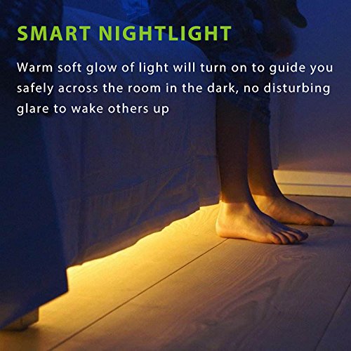 5ft/1.5m Night Light Strip: Automatically illuminate warm soft glow in the darkness to guide you safely across the room without disturbing glare to wake others up and fumbling to find the light switch