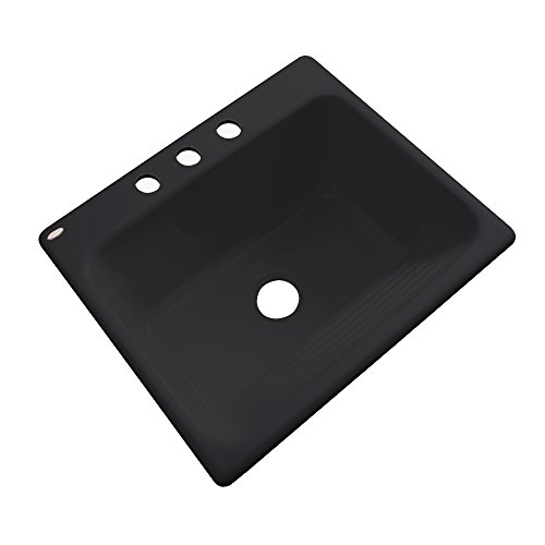 - Measures 25-inches by 22-inches by 12-inches deep with three pre-drilled faucet holes