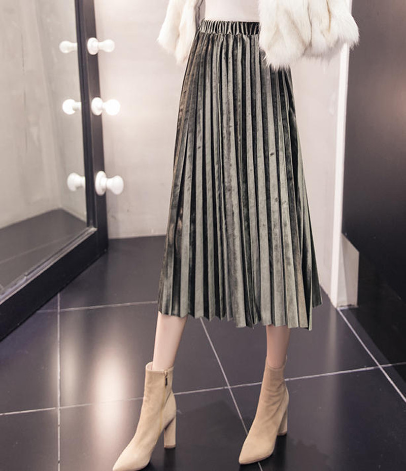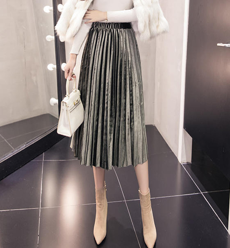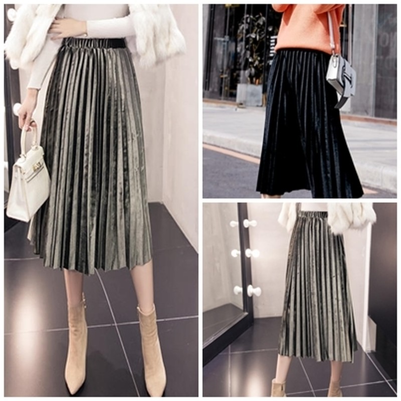 ♢ポイント♢ ベルベット素材のプリーツスカートです。 タイトめのトップスとあわせるのが◎