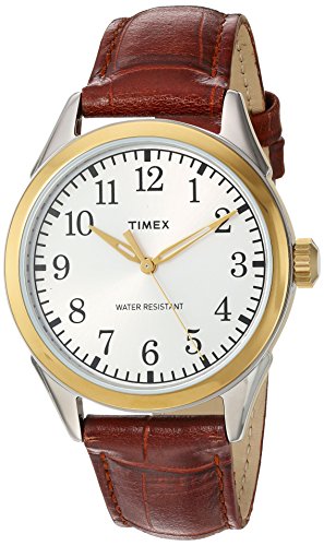 -. Binding : Watch -. Brand : Timex -. Feature : Watch featuring round dial with Arabic hour markers and cutout hands in gold-tone finish / 40 mm brass case with mineral dial window / Quartz movement with analog display / Croco-embossed genuine leather band with buckle closure / Water resistant to 30m (100ft): in general, withstands splashes or brief immersion in water, but not suitable for swimming or bathing -. Label : Timex Corporation -. Manufacturer : Timex Corporation -. ProductGroup : Watch -. ProductTypeName : WATCH -. Publisher : Timex Corporation -. Studio : Timex Corporation -. Title : Timex Briarwood Terrace Watch