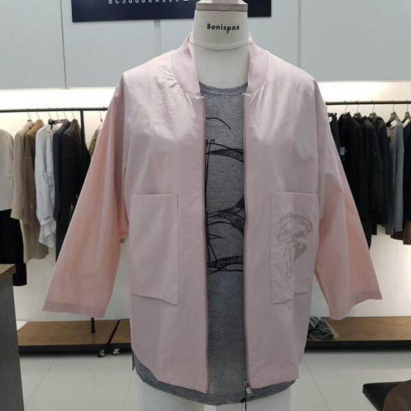 차이나 디자인에 숏점퍼 스타일 이며 앞주머니포켓이 귀엽게 포인트가들어가있으며 홋겹으로 한여름까지 착용가능한 데일리상품입니다