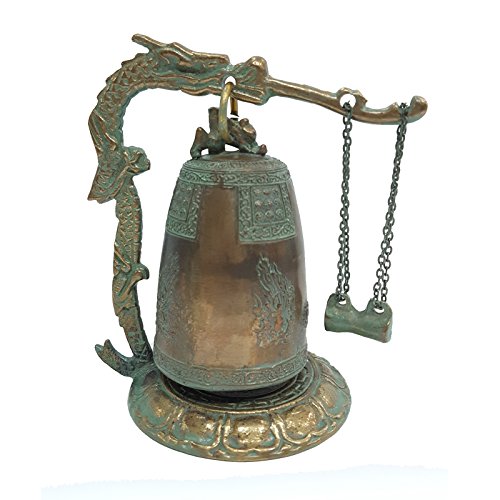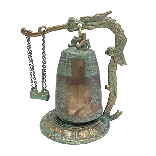 Korean Bell Green Verdigris Color Small Miniature the Divine Bell of King Songdok Dragon Pedestal