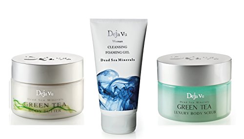 -. Feature : lot includes: / Deja Vu Dead Sea Minerals Green Tea Body Butter - 250 ml/8.54 fl. oz / Deja Vu Dead Sea Minerals GREEN TEA Luxury Body Scrub - 250ml 8.5oz / 1x Cleansing Foaming Gel