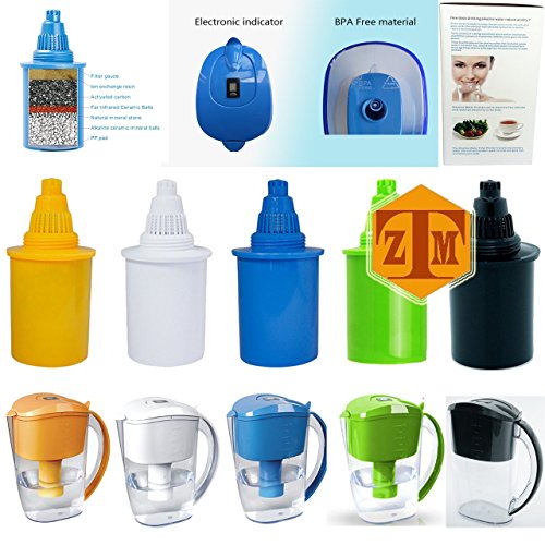 WellBlue Alkaline Orange Replacement Water Filter 3-Pack for 3.5 Liters Alkaline Ionized Water Filter Pitcher, Free shipping. The cartridge life depends on local water quality, such as water hardness, chlorine content. Based on reduction of chlorine and organic impurities, the cartridge filters up to 300 liters. To ensure optimum performance, you should change the cartridge in time. To remind you of the next cartridge change, water filter pitcher is equipped with a smart cartridge exchange indicator. Body material: AS Lid and handle material: ABS Cartridge/ Filter housing materials: PP Inside material: Active carbon, Ion exchange resin ORP balls, Magnesium balls Capacity of pitcher: 3.5L, filtration capacity: 2L Smart digital indicator will remind you to replace the cartridge in time Humanity design makes convenience usage Easily replaceable cartridge by screwing Fashionable design to fit inside refrigerator door Low negation ORP = -100 to -200mV Makes great-tasting alkaline water BPA free Easy fill pitcher Electronic indicator to change cartridge 0
