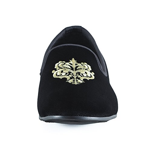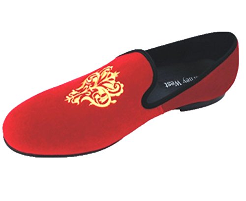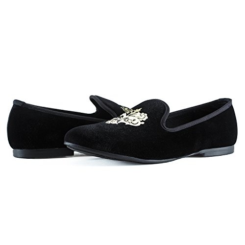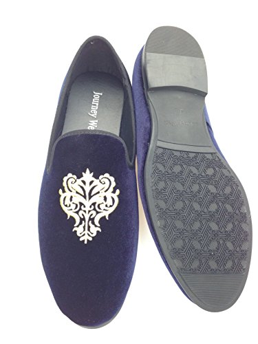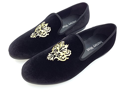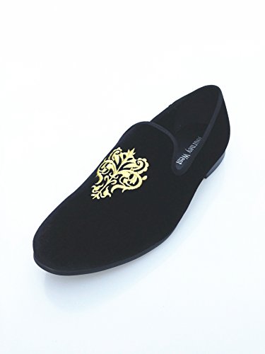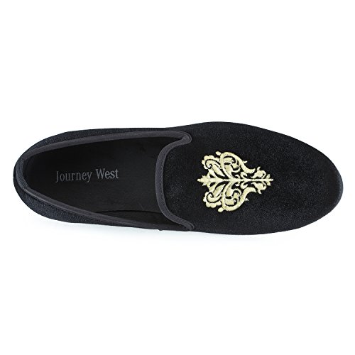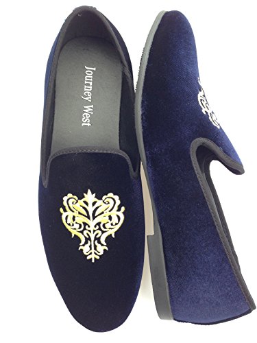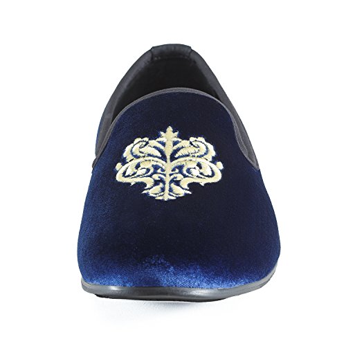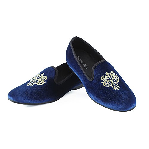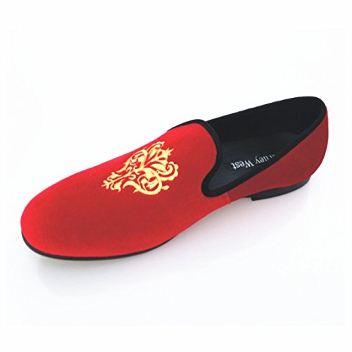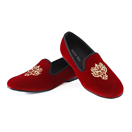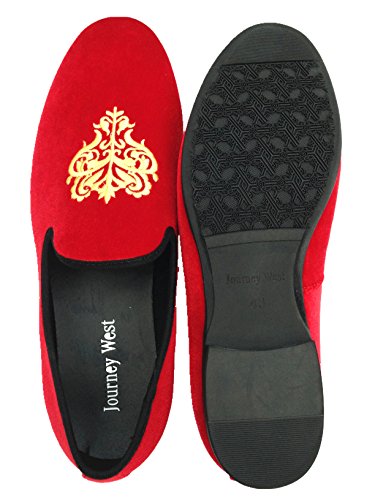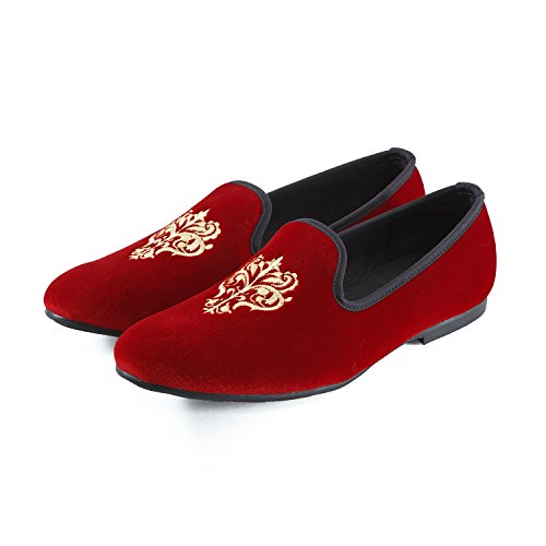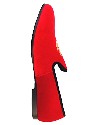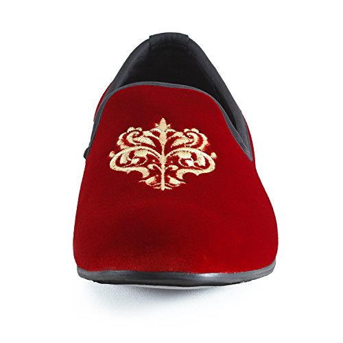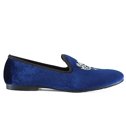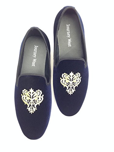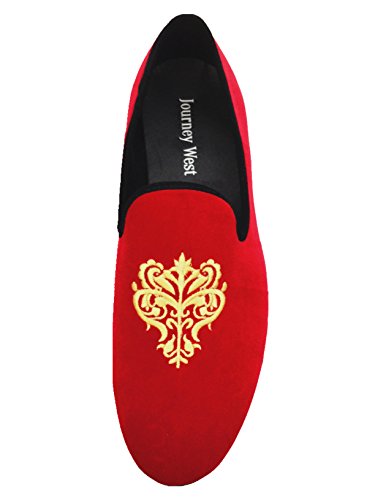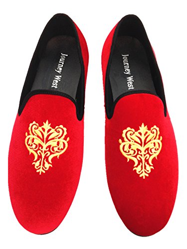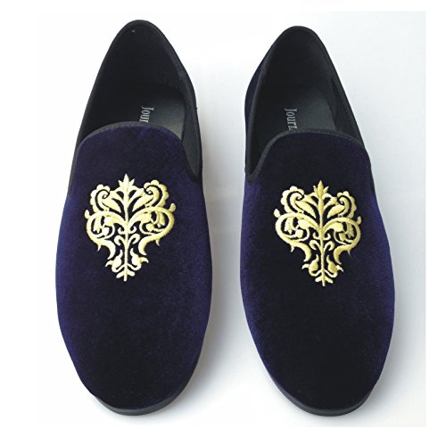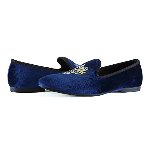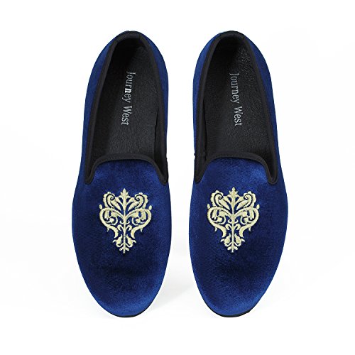 Men's Vintage Velvet Embroidery Noble Loafer Shoes Slip-on Loafer Smoking Slipper Black/Red/Blue