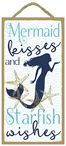 -. Binding : Kitchen -. Brand : Honey Dew Gifts -. Color : Light & Dark Blue, Cream -. EAN : 0670739076623 -. Feature : 5" x 10" wood sign with attached rope for easy hanging in your home or kitchen / Indoor use only / Made in the USA -. IsAutographed : 0 -. Label : Honey Dew Gifts -. Manufacturer : Honey Dew Gifts -. ProductGroup : Home -. ProductTypeName : HOME -. Publisher : Honey Dew Gifts -. Studio : Honey Dew Gifts -. Title : Mermaid Kisses and Starfish Wishes - 5 x 10 inch Hanging, Wall Art, Decorative Wood Sign Home Decor -. UPC : 670739076623