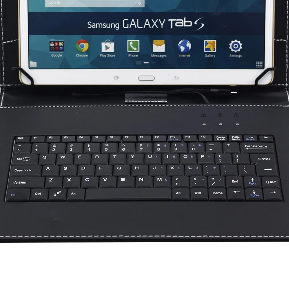 マイクロusbキーボードレザースタンドケースカバー用ユニバーサル10 10.1インチandroidタブレットpcサムスンlenovoタブレットキーボードケース