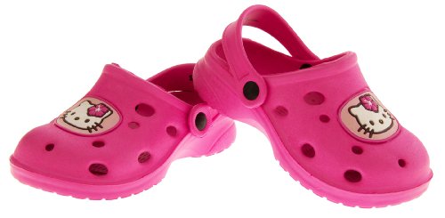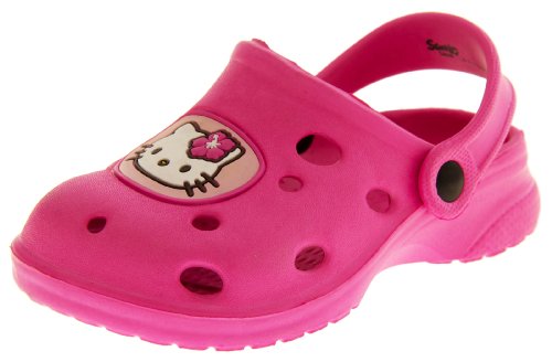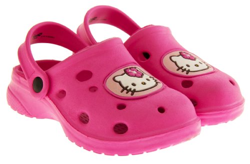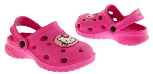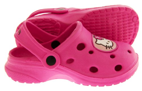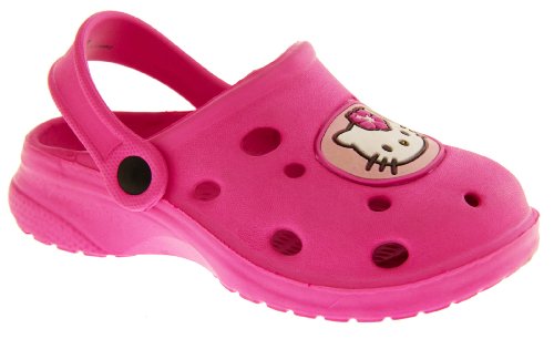 Your little girl will lover these stunning beach clog sandals! They have a plain upper and the Hello Kitty logo to the front! They have cut out holes to the upper, making them breathable, with a strap that loops around the back of the ankle (This is entirely optional as you can just wear them as mules instead).