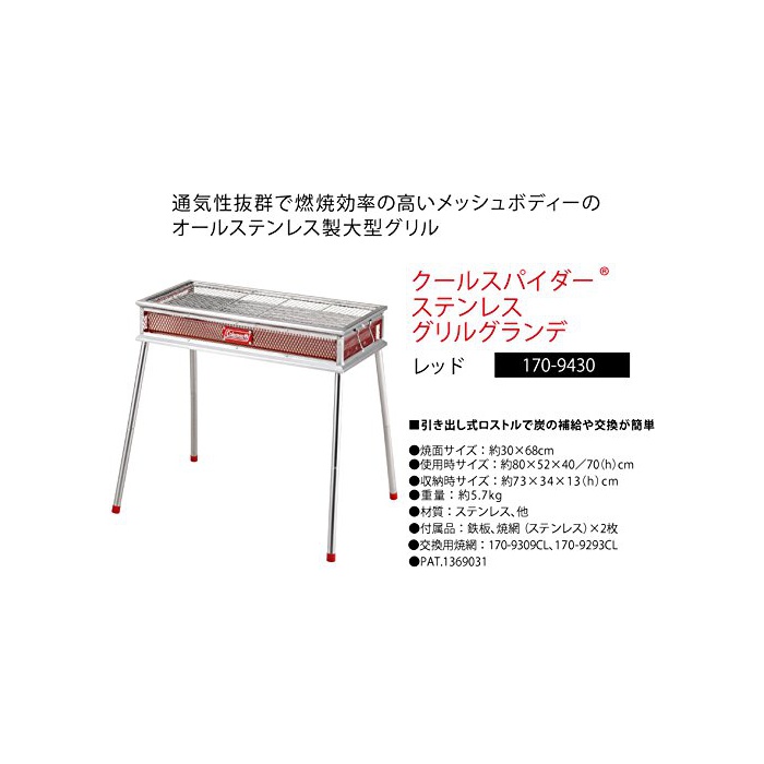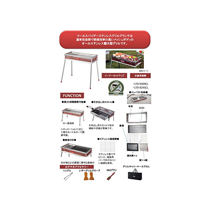 원본상품명: コルマン コンロ クルスパイダステンレスグリルグランデ レッド 170-9430 [5~6人用] スライド