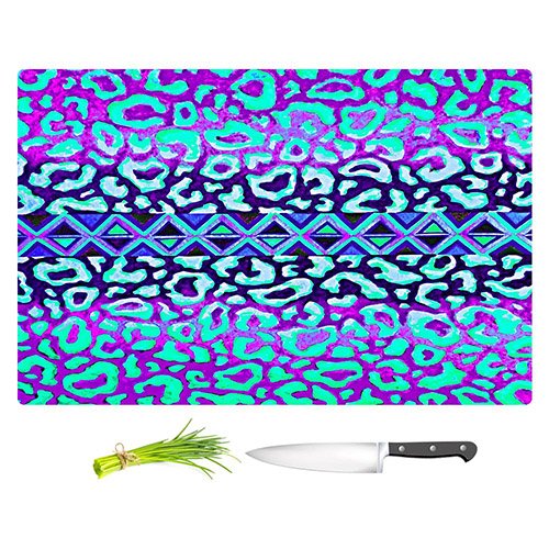 DiaNoche Designs CB-JuliaDiSanoLeopardTrailMintLav2 Julia Di Sano-Leopard Trail Mint Lavender Unique Kitchen Slicing Dicing Bar Artistic Decorative Cutting Boards from, Large 15" x 11"